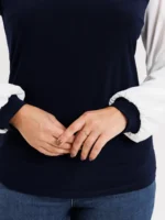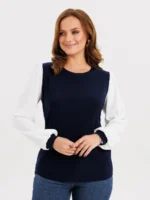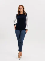 Джемпер женский модель 89 синий с белыми рукавами