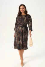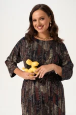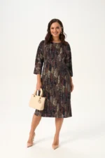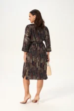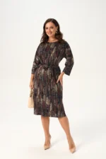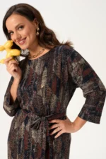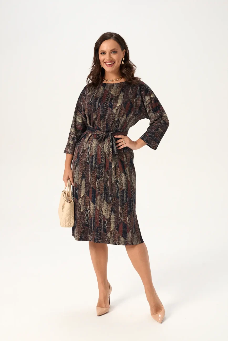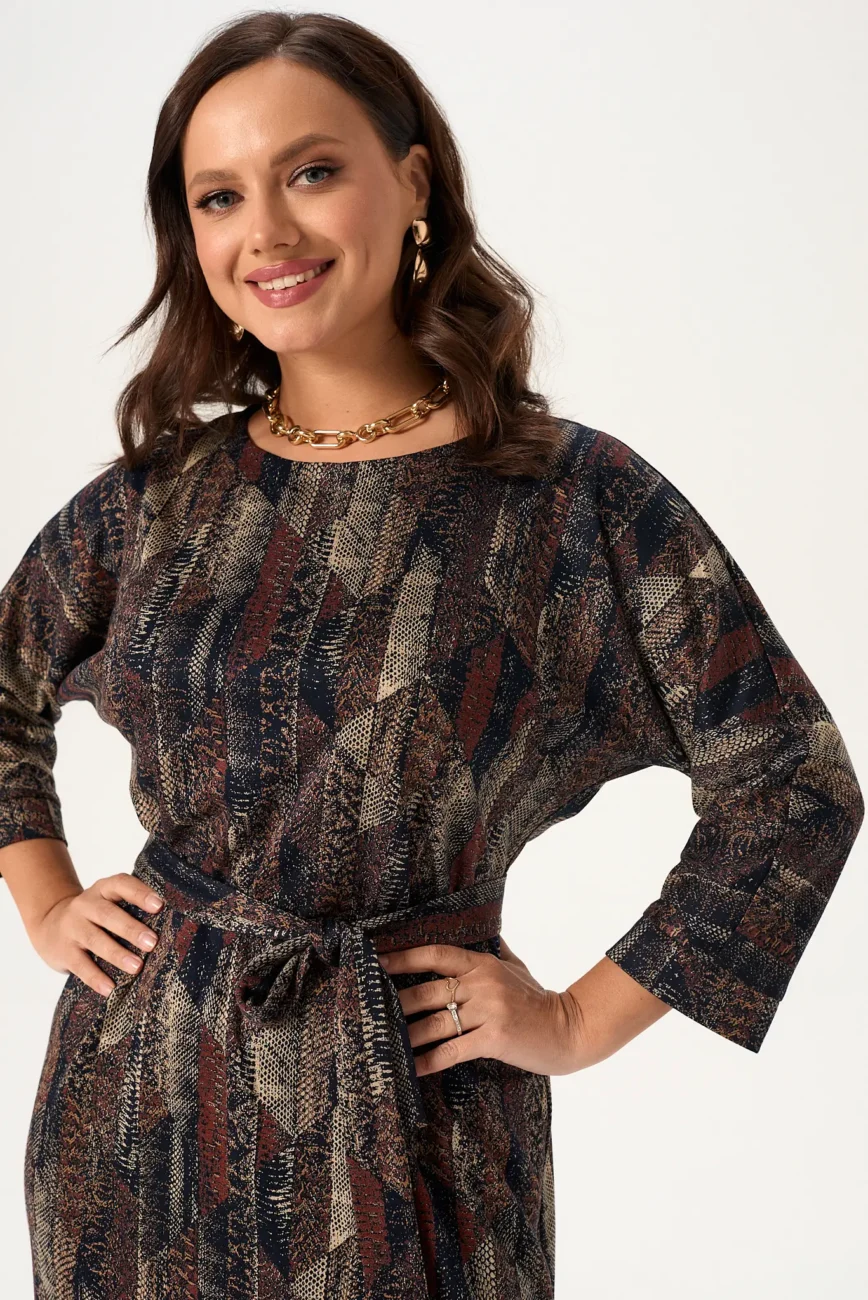 Эффектное нарядное платье летучая мышь- прекрасный выбор для торжественного мероприятия. Модель выполнена из мягкого трикотажного полотна с дизайнерским принтом, который зрительно вытягивает фигуру. Рукава три четверти создают свободный силуэт. Боковые разрезы размещены на достаточной высоте, позволяя Вам свободно двигаться. С помощью пояса можно легко подчеркнуть талию. Эта универсальная базовая модель подчеркнет Ваш стиль и создаст элегантный образ в любой ситуации.