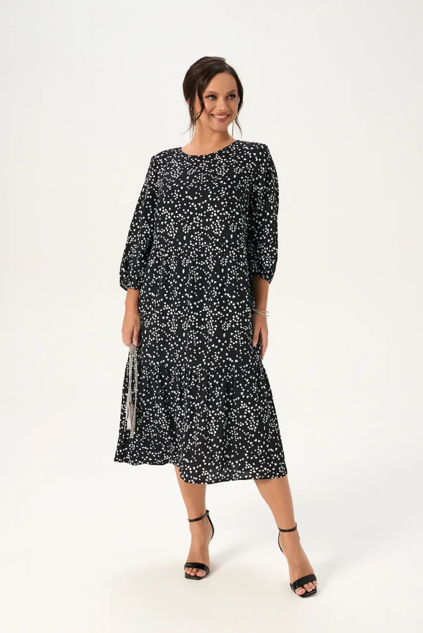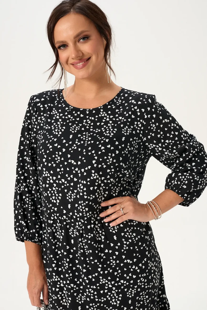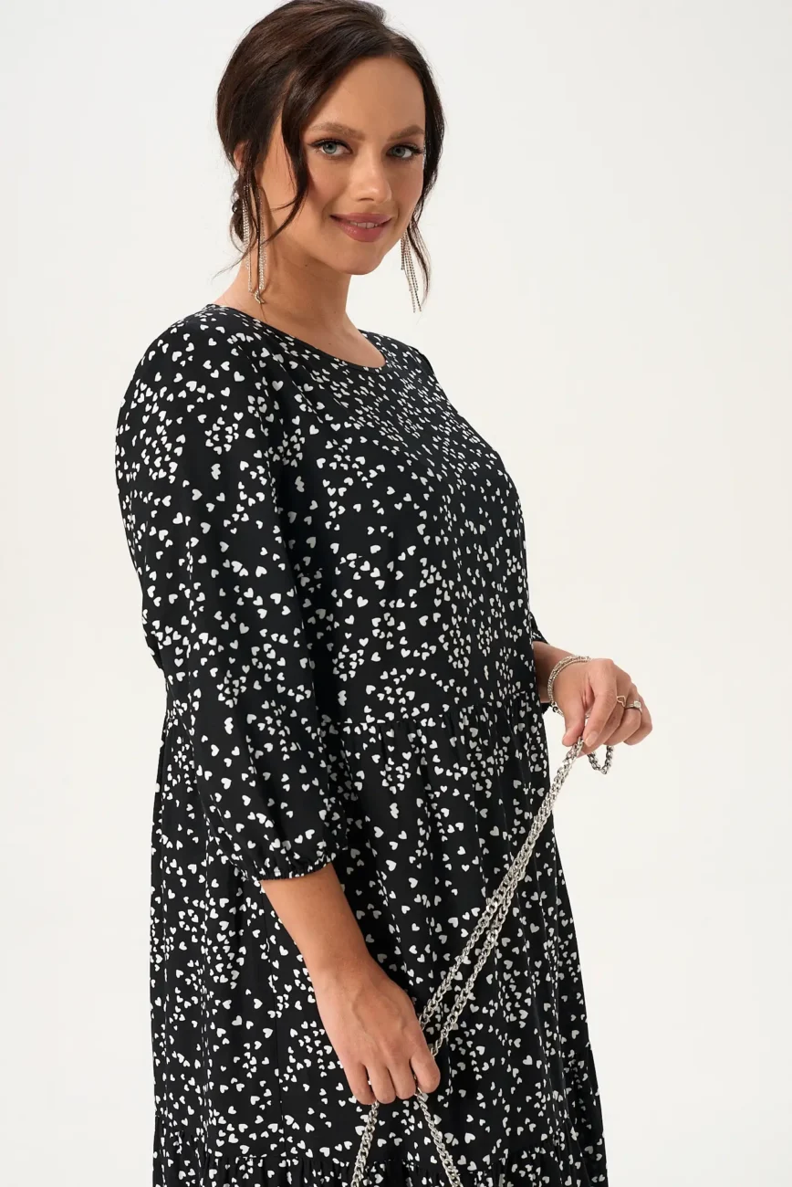 Платье женское модель 130 белые сердечки на черном фоне