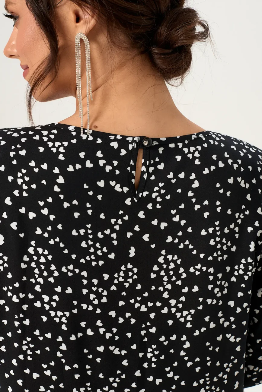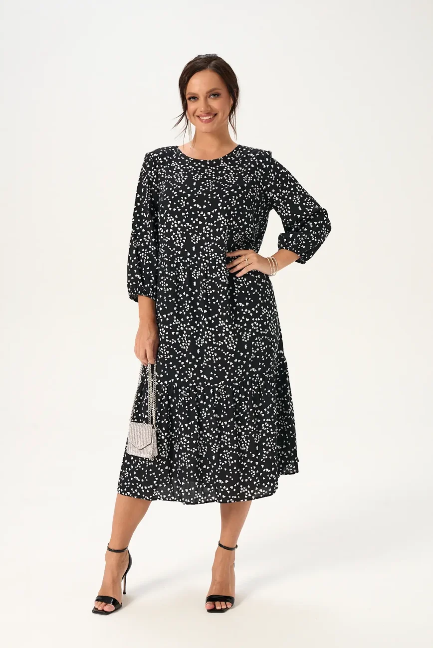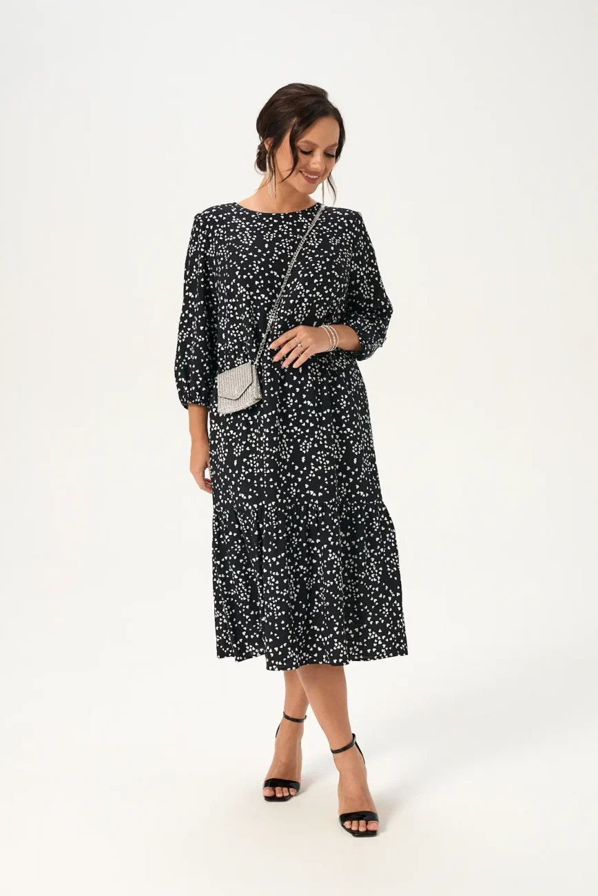 Платье женское модель 130 белые сердечки на черном фоне