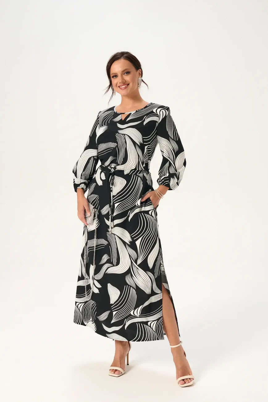 Платье женское модель 141 черно-белое
